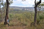 The scenery changed from the monotony of the plains as we crossed over the Great Dividing Ranges, the bushes became denser and we could see some of the grandeur of the gorge. The road to Carnarvon Gorge started out smoothly with the beautiful scenery in front and docile looking cattle grazing on green pastures on either side – idyllic. Then we hit dirt road. I was very happy that we put the washing machine on before we left in the morning (it’s a washing barrel more than a machine, it works by shaking and shaken it got). As we drove through creeks, pot holes and corrugations I was hoping that Ron’s back wouldn’t shake out of alignment. Ron assured me that this was a good freshly graded road, not even a preparation to what is to come. We missed out on the National Park caravan park but Takarakka is pretty good with lovely trees and beautiful clean amenities otherwise why would 200/300 other campers choose it. We have a shower in the Karavan but 3 minutes under the park’s shower is long and luxurious. Really looking forward to the hiking tomorrow – hope those Kookaburras will wake us up at the crack of dawn – even though we didn’t share our cheese with them.
