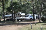 Again, up before sunrise and watched the reddish clouds on the horizon grow lighter as we prepared breakfast. A leisurely breakfast & clean up, then packed & on the road by 8am, following our night time neighbours out of the rest area. Injune is a small town with one BP fuel stop, we must have created a precedent for stopping there because as we started refuelling, another four cars with caravans stopped for fuel creating a bit of a traffic jam at the three bowsers. The Carnarvon Hwy to the Carnarvon Gorge turnoff was OK, a bit of roadworks in a few places, but generally the road was in good condition. We followed another caravan from just out of Injune to the turnoff & were followed by another caravan from Sterling, Canberra whom we met at the Injune fuel stop, they turned off with us & followed us right into the gorge. The road into Carnarvon Gorge was good bitumen for about 20kms, then the next 20kms was mostly good dirt, freshly graded, with a few interesting creek crossings that needed to be taken very slowly with some holes & bumps either side.