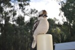 We drove right to the end of the road, the visitor information centre & were disappointed to learn that the superb campground there was only open during Queensland school holidays & tonight was the last night it was open. We turned around & headed back to the Takarakka Bush Resort about 4km & booked in for 3 nights. We set up camp in a small powered campsite & went for a walk up onto the ridge lookout above the camp where there is a reasonable view across to the sandstone bluffs on the other side of the gorge. We then went for a walk along the very pretty Carnarvon Ck with very clear water & noticed the flood damage along the creek that occurred in the floods earlier this year. Back to camp for cheese & coffee & we were visited by some hungry kookaburras looking for handouts, one landing on the rear roof of the Karavan & another right next to me on the power box. It created a great photo opportunity for the people camping around us & no, we didn’t feed them.