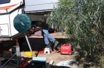 Well, a little battery charging problem. The batteries were unusually low after being on power for 3 full days at Carnarvon Gorge & I put it down to the fridge door that had swung open on our trip to Barcaldine. Wrong. The generator was fired up & the 240v battery charger was not doing anything. The solar panels on the roof were working and the additional solar panels on the ground were working & charging at 14 Amps, but no 240v additional power. So, I spent all morning poring over the manuals & wiring diagram, tracing the wiring & checking all of the electronics. I traced through all of the additional wiring & electronics installed with the solar panels & finally discovered a switch that was not in the manual. It needed to be turned on to connect the 240V battery charger output to the batteries. After that the batteries were charging at 24 Amps with both solar & the generator & I kept the generator running all afternoon to boost the battery condition up.