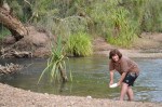 An early morning walk before sunrise, then a late breakfast & a swim, another great start to a lazy day. Tereza wasn’t gold panning after breakfast either. The only real effort today was the drive up to Gregory Downs with our toilet container to empty it at the dump point & give it a clean. We lit a fire this morning to cook a damper in our camp oven & found a slightly charred result that you nearly had to use an axe to cut. It still tasted good with some honey & the charcoal scraped off. We lazed most of the day, Tereza reading a Wilbur Smith novel & me bird watching & snoozing at times. Time for another swim. We rounded out the day chatting at the fireside of some new found camping friends until bed time.