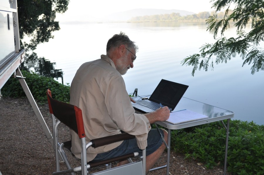 Nope…I think he is catching up on emails and playing games online. I can’t see any bills there!