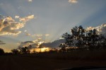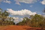 After a sunrise breakfast we packed up & went for a swim in the lovely waterhole in the King Edward River, we were trying to delay the inevitable – that rotten road to Drysdale station, then even worse, the horrible 59km from Drysdale Station to the Gibb River Road. John found one of his shock absorbers leaking. We drove very carefully, stopping for a family of 3 Brolgas at one creek crossing just after we got going, then stopping every 20 km to check equipment. At Drysdale they told us that the plane would come in on Tuesday & they would order 2 new shock absorbers, (their policy is to always order 2 of every spare part) over lunch we decided to keep going. We often drove on the shoulder of the road to get some relief from the corrugation (it felt like we would tip over). Slow drive but finally we got to the Gibb River Road. It started out great until we got to corrugations, sharp rocks, big rocks & bull dust (big hole covered over by very fine dust). Things got better & some patches were even good. Ron & John had a very hard day of driving, a shade over 200km in 6½ hours, averaging about 32 km an hour.