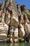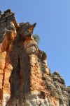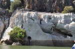 We managed to get front row seats in the boat in front of about 100 other people. A photographers dream. The commentary by the ranger was interesting & informative. The gorge is part of the same limestone reef as the Napier Ranges that form Windjana Gorge & Tunnel Creek. It was an absolutely massive structure 360 million years old. There is a special fallen rock in the middle of the water in Geikie Gorge, similar to Windjana, that has spiritual significance for the aboriginals. The large rock is called Darngku. Geikie Gorge will be renamed Darngku in the next couple of years. We saw a few small freshwater crocodiles, on the way back a larger one that was under the bat colony waiting for (or just had) a feed.