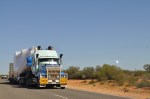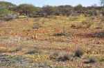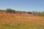 A little out of town we stopped & had a closer look at some of the flowers, the pink ones are absolutely stunning close up, hard to believe in the desolate desert that you can find something so beautiful. We also had to make a few temporary stops as a few large trucks with very wide loads came from the opposite direction. The monotony was broken once when some very bare hills poked out of the desert, then it was back to the same old scenery, long straight seemingly endless roads. However, the wildflowers are delightful & really brighten up the desert.