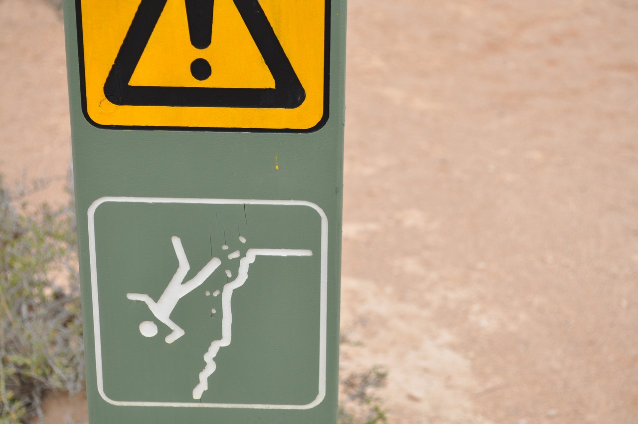 Look up, there may be a base jumper above and rocks may be falling from his jump