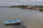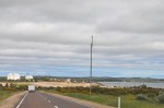 Heading down the coast further more wheat & sheep, (the wheat is so green) straight roads, & glimpses of sand dunes, lakes & the ocean. Port Kenny is very small, although the old hotel looks good (apart from the sign writing). The scenery does look very good with the blue of the ocean contrasting with the white of the sand dunes & the vivid green of the wheat, with the wildflowers bordering the road adding another dimension. We stopped at Elliston to refuel & the only fuel station between Streaky Bay & Port Lincoln had a quirky sign pointing to the toilets (4U2P). We had a short drive around the tourist route in Elliston & saw the historic jetty (don’t know why it’s historic) plus a good look at the bay. The bay is unusual in that it has a rock reef across most of the ocean side of it with breakers crashing over the reef, I’m sure a lot of boats have come to grief here.