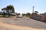 The road down the pass was very windy & scenic, with lots of yellow wattle in full flower. Again there were vivid green wheat fields stretching as far as the eye could see. We stopped on the outskirts of Orroroo to look at the GIANT red gum tree. It was huge, it’s not so much the height, but the girth of this tree is massive, measuring at a 10.89 metre circumference. The tree was absolutely full of red-rumped grass parrots & nesting hollows everywhere, befitting a tree estimated as being more than 500 years old. As we entered the small town of Orroroo a family of kangaroo sculptures greeted us at the town sign & in the main street, a couple of sculpture horses were pulling a stump-jump plough. They were absolutely magnificent, made from corrugated iron with glass balls for eyes, even the heads moved in the wind (Chief Minister, why didn’t you come to Orroroo & commission their artist before you spent all that money on those very ordinary art pieces that adorn Canberra). The person that made them is very talented. The town is full of old bluestone buildings & houses, it is full of charm & character, we both really liked Orroroo. We stopped for a coffee & there was even a kangaroo outside the coffee shop. This is definitely a town we will be coming back to & spending more time at.