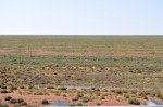 The wheat fields gradually gave way to desert & bare mountain ranges. We had a quick stop at Mannahill where the abandoned stone railway station caught our eye, complete with resident hawk on one of the roof spires. We stopped at Olary Creek, just past the “township” of Olary (a few buildings), for lunch. The creek recently had a small flood & the river sand was still very damp with some large pools under the road & rail bridges. It was a lovely spot under the shade of some trees, with parrots calling everywhere. Unbelievable, yesterday we were freezing, today it is shorts & t-shirt weather & we were seeking shady trees to sit under. We would have stayed there the night, but we haven’t the time anymore.