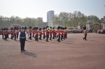 We decided to “walk the streets of London.” Everything is so close – we walked through the famous Marble Arch into Hyde Park. It’s good to see so much green in the middle of London – we missed the daffodils but we came across some lovely tulips & other spring flowers. The walk was beautiful, we delighted in seeing the old buildings, statues & the magnificent gates on a “balmy” (very smoggy) morning. Of course, like all good tourists we headed through Wellington Arch & Green Park to Buckingham Palace to see the changing of the guards – we were there about an hour earlier – but SO MANY people there, thousands, we were lucky we got a reasonable spot to see the guards marching by, not the actual changing of the guards. There is also a lot of temporary construction scaffolding & structures built for the filming of the royal wedding next week. There are police everywhere.