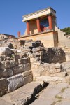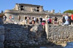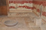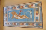 A sleep-in this morning, even though the ship was docked at Heraklios on the island of Crete, we couldn’t disembark before 8.00am as the Palace of Knossos didn’t open until 8.30. The drive to the Palace of Knossos took about 25 minutes & our local guide Fulia filled us in on some of the history of the Minoan civilization, the people that built & lived in the palace. This site is the oldest we have seen so far, built around 2,000BC (that’s 4,000 years ago). The excavation of this palace was commenced in the 1800s by a Greek, then in the early 1900s a British archaeologist, Sir Arthur Evans spent 30 years of his life at the site. Then French, Italian & Greek teams excavated the three other smaller palaces on different parts of Crete. The Palace of Knossos was where King Minos of the Minoan civilization lived, it had around 1,500 rooms & was three stories high. Parts of the palace have been partly reconstructed to give an idea of how it may have looked all those years ago before being destroyed by a large earthquake. The reconstruction also includes copies of some of the frescoes found in remarkably good condition on some of the walls. The original stone throne of King Minos is intact & still in it’s original position. This palace also has the first known flushing toilet, this civilization was that advanced. Fulia took us over all parts of the palace, explaining in great detail the different parts, functions & relevance to history. We ended the tour of the Palace of Knossos at the theatre, capable of holding 3,000 people & is the oldest known theatre. The road off to the palace of the High Priest is still in great condition & its hard to believe it was laid 4,000 years ago. Back to the bus, port & ship, it was up anchor & off to Santorini.