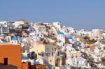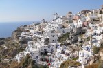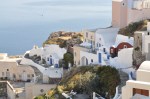 It took 25 minutes for the bus to reach the tiny township of Oia on the northern tip of the caldera, passing through Fira, the main town, on the way. The houses on Santorini are typically small, dazzling white with blue windows & doors, lots of windows, vaulted roofs & built seemingly randomly joined & on top of each other, stretching down the slopes of the volcano rim. The many churches have stark blue domes contrasting vividly with the whitewashed walls. Oia has to be the prettiest town we have seen, no wonder it is on all the promotional photos of Greece, it is stunning. In Oia we walked through the narrow cobblestone streets to the very end, a medieval battlement perched on the cliff top with a commanding view over the tiny fishing port below, the village of Oia & the caldera. We walked & explored the tiny streets of the village, taking lots of photos & dodging lots of other tourists before boarding the bus back to Fira. We walked the main shopping streets of Fira, again being awed by the views of the village & the harbour far below before boarding the cable car for the 2 minute trip to the tiny port of Skala far below. Back to the ship via the tender, dinner & bed. Santorini is the prettiest place we have seen all trip, it really is stunningly beautiful.