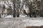 The wind steadily built through the night & by morning it was strong enough to blow a dog off a chain. The lake had waves about a metre high crashing through the trees in the water then onto the sand, spray flying everywhere. The wind wasn’t cold at all. We all enjoyed this place, the waves were mesmerising. We decided to leave seeing it was so windy (we couldn’t really go for walks) so after packing went for a drive down to look at the main weir. There were rivers of sand being blown across the road, an amazing sight, I have never seen anything like it before. Down near the weir in the sheltered areas there were multitudes of water birds, plus a few more nice free camp spots. We stopped to re-inflate the tyres for bitumen road use, then off to Broken Hill. We were punching straight into the wind, it must have been blowing at least 100km/h, with tumbleweed blowing furiously down the road & a huge dust storm whipped up. It felt surreal, driving into the dust storm with a very strange colour filtered light, the low salt bushes & native grasses looked silver & gold, so beautiful. We drove along behind a convoy of three Eco-Tourer vans, travelling at about 80km/h. It was too dangerous to travel any faster, the wind gusts were extreme. If us grey nomads wouldn’t be on these roads they could close them.
