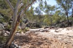 An easy relaxing start to the day, the majority of corellas off early & the steady chorus of all the birds around the campsite kept us entertained. We headed off on the Link Walk first, a pleasant walk that links the campground & the Homestead Creek day use area, along the banks of Homestead Creek. The creek has had a significant flood recently washing away most of the bitumen parking lot at the day use area & washing away at the creek banks & carrying lots of flood debris in its path.