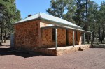 After lunch we turned south again & stopped to look at the Great Wall of China, a startling rock formation that looks like someone has built a very large stone wall around the top of the range. Next stop was the ruins of the Appealinna Station, a short drive off the road & victim of the many droughts of the 19th century. The building is made of flat mudstone picked from the ground where it lies in huge abundance, even the toilet was made from stone. The next stop was Stokes Hill Lookout with another magnificent view of the surrounding countryside.