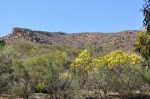 We drove out at around 8.20am to Wilpena Pound for a walk into the Hills Homestead inside the pound itself. The walk was a very easy stroll along Wilpena Creek amongst some of the most majestic & distinguished river red gums I have seen. Topping it off was wattle, not only the magnificent yellow flowers, but the sweet perfume permeating our whole walk. It was one of the most pleasant walks we have been on. It was a very easy hour walk to the Hills Homestead, a stone building that has been well restored & cared for. They had signs telling the history of the family who lived there – what hardships they endured. We were serenaded by a family of blue wing kookaburras (well, they laughed at us) and again surrounded by an amazing array of birdlife.