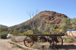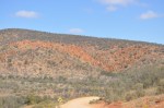 A late start getting away at around 9.30am, as we spent a bit of time looking at the geological exhibits & the seismic information exhibit at & near the Arkaroola Visitor Centre. Just out of the Arkaroola Township a rare yellow footed rock wallaby waited at the side of the road for us & kindly jumped across in front of us, luckily for it we slowed, a very pretty wallaby with a very long bushy & flexible tail. The road from Arkaroola to Copley was mainly very good dirt with a few rougher sections through creeks & some washaways. The mountain ranges were varied, beautiful & interesting, with different shapes, colours, textures (the distant mountains looked dark blue & sometimes purple, closer ones at times beautiful ochre, green or brown dotted with small shrubs) & vegetation as we travelled along. We passed through two very small aboriginal townships with a strip of bitumen through town to stop the dust before stopping at Copley for lunch at the famous Quandong Café, where people from hundreds of kilometres around flock to eat. (Yes, we travelled about 130km & another 70km & we never came across anywhere else to eat, the only thing they had was an assortment of 5 different kinds of pies, Ron had the road kill – kangaroo, Mike & I had Beef, Rose chicken, Helen & John the shepherd’s, I had a large Quandong milkshake the others had coffee & to make sure that all the pies were tasted Ron had a Quandong pie as well).