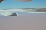 The small park across the road from the William Creek Hotel has a collection of rocket memorabilia from the launches of rockets from Woomera, with many rocket pieces landing on the properties around William Creek. The flight over Lake Eyre was a revelation, the vast expanse of lake is mostly white salt, (about 30 cm thick) with a small amount of water (about 15% & the water is about 6 – 7 times saltier than the ocean) remaining in the deepest pocket of Lake Eyre closest to William Creek. They expect the water to evaporate by the end of the year. In the last hundred years the lake has only filled 2 times, 1974 was the last time. The flight was interesting & not too bumpy, we descended to 500 feet over the lake for a closer look. The colours of the lake change to pink as you fly over it, with the colour coming from the algae thriving in the very salty water. The land from the air looks just as barren & unsupportive of life. It really is a harsh & hostile country. Anna Creek, the name of the cattle station we were flying over, is the biggest cattle farm in Australia, the size of Belgium & they have approximately 18,000 cattle on it.