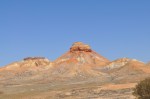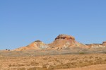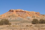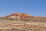 An easy start from Oodnadatta heading towards Coober Pedy & the desert became even more sparse of vegetation with red gibber stones stretching endlessly across the desert plains. After around 50km we turned off & headed towards the Painted Desert & Mt Arckaringa. We were hoping for some nice scenery but were totally unprepared for what we saw, as the hills of the Painted Desert came into view they revealed the most spectacular colours, all the colours of the rainbow in various hues etched down the faces of the hills. As we drove further in & the hills closed around us the sight was very spectacular, I have not seen anything like it anywhere else in Australia. The shapes of the hills & surrounding slopes etched with the most amazing colours. We stopped at the lookout to view & take photos & all of us were amazed at the sheer beauty surrounding us, it really has to be seen to be appreciated, even the ground looks special. We then drove the short distance to the carpark for the walk to the top of Mt Arkaringa, this short half hour walk was very special, with every way you turned or looked presenting another amazing view.