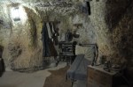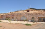 The minibus tour left at 8.20am so we were up bright & early & I wrote up yesterday’s blog before breakfast. We met Rudi, our 77 year old tour guide & opal miner of 37 years & headed off on an informative & interesting morning. Rudi drove us all over Coober Pedy with the first interesting stop the underground Serbian Orthodox Church, St Elijah. This church is dug out of sandstone & is totally inside a small hill. The temperature inside is a very pleasant 24C constantly when outside it can be unbearably hot. The sandstone walls are beautifully multi coloured & finished with a clear spray that not only enhances the colour, but binds the outer sandstone to stop it crumbling. There are also some beautiful carvings of the natural sandstone above the altar. There are also public access mullock heaps in town that anyone can try their hand at noodling for opal that Rudi stopped at for a short while. Some people are successful with this & can find some overlooked precious stone.