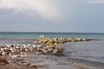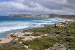 We packed between intermittent showers & on the road again, with the first stop at Pennington Bay. We had been reasonably sheltered from the wind at Penneshaw, but here on the exposed southern coast it was blowing reasonably strongly & was a bit cool. The ruggedness of Pennington Bay was picturesque, with some big waves rolling in & stirring up rough surf.