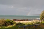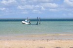 We drove on to Kingscote, through a pretty farming countryside, with the odd canola crop providing a lovely contrast to the verdant greens of the wheat & barley & lush pastures, with fat sheep enjoying themselves in the good pastures. The camp ground at Kingscote is fairly basic, tucked in amongst some gum trees, though reasonably close to the beach of Nepean Bay. The bay is very shallow for about 100 metres from shore. After setting up we headed out exploring Kingscote & saw a casualty of the strong winds, a fishing boat half full of water resting on the bottom & tied up to a large trailer. We walked around the town centre, had seafood for lunch, explored the wharf & saw some cute seals, while nearly getting blown off the jetty by the wind, so strong & cold (if there is a jetty Ron has to walk out on it & I am mad enough & follow him no matter how long the jetty is or how terrible the weather).
