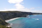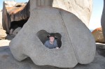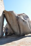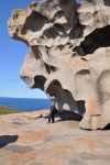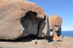 In the distance we could see the stark granite dome that is the site of the Remarkable Rocks, our next destination. When we got there, we could see why they were called Remarkable Rocks, they really are remarkable. These granite rocks are sitting on top of a granite dome that forms a headland, they are really huge & shaped into some extraordinary shapes by the action of wind, water, salt & erosion. The geologists say that this process has been going on for 500 million years at this location. It is also remarkable to see streambeds cut into the granite from where water flows off the top of the dome. I can’t imagine the countless years it must have taken for water alone to cause erosion on the bare granite to that extent, it is really pronounced. We had a lot of fun posing photographs with all the unusual rock shapes & again we spent a lot longer than we expected at the Remarkable Rocks.