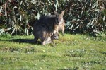 It was getting late afternoon so we headed back to the visitor centre café for a late lunch, then back to camp. We walked the Koala Walk at the caravan park, but didn’t see any koalas. We also did the Lagoon Walk again, even prettier than yesterday now it was sunny with lots of kangaroos & Tammer wallabies, some of them had the cutest little baby Joeys peeping out of their mum’s pouches. After dinner I did the Koala Walk at night with my head torch & saw two koalas, one asleep & one feeding, plus a small possum & two large possums. There are lots & lots of Tammer wallabies out feeding at night, I am nearly tripping over them. We had another great day.