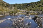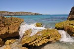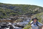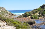 We drove back past Breakneck River & Sandy Creek before turning off & stopping at Snake Lagoon for the Snake Lagoon Hike. Well, there is no water in the lagoon & thankfully we didn’t see any snakes. The walk took us down to the Rocky River & followed along it to the mouth. It was a fairly rough walk, lots of up & down, stepping over rocks & uneven ground, so not ideal. We stopped & had our lunch at the small wooden footbridge that crosses the river. The river lives up to its name, it is very rocky, though picturesque, with a surprising amount of water flowing down it. The river meets the sea in a very small bay, with some huge waves greeting the river as it flows out. Some people even swam there, personally, I think they are crazy, it just looks too dangerous, there is a huge volume of water pushing into the bay & there must be a huge rip taking it back out again. It just didn’t look safe. We took it just as easy going back to the Snake Lagoon car park & we were a little tired & thirsty by the time we got there, so we sat at the picnic table in Snake Lagoon & had a rest, drink & snack watching the swallows & blue wrens flittering around.