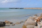 This morning we started out a little later than usual while waiting for the rain to clear & headed down to the causeway wharf at Victor Harbor, rugged up in our rain jackets & walked out to Granite Island, around 500m from shore. The wind on the first half of the wharf was extreme & cold, but started to settle down once we started to get into the shelter of Granite Island. There were not many people out walking, only us two. There is a walking track of about 1.5km distance around the island so we walked around, going from the sheltered side into the full teeth of the raging gale was interesting. The sea was very rough with large waves crashing into the rocks throwing huge plumes of spray up, at times splattering us with sea water. When we reached the shelter of the café we took advantage of the comfort & had a very nice lunch of garfish & salad. After lunch we walked around the island again, we had enjoyed the wild conditions so much that we decided to brave the elements & enjoy the vista from the other direction. I think it was even windier & colder than the first time we walked around, with even more spectacular wave action crashing into the rocks & sending up huge sprays. Victor Harbor has a horse drawn tram to take people out to Granite Island but today they considered the weather too awful for the horse & he took me out there (I must love him or I am crazy to do these walks with him).