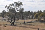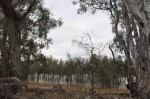 We then decided to take it easy & a little less risky this afternoon & take the Hattah Lakes Nature Discovery Drive, a 6.5 km loop around Lake Hattah, including Lake Bulla & Lake Arawak, all with water in them. Well, we hadn’t got far on this drive when we saw our next snake, a large black one, slithering rapidly off the road as we approached. This loop drive had numbered posts that went with a descriptive pamphlet that we had, so we stopped at each post & read the information about the special plants & other natural features near the area. This was very interesting & again we became more immersed in the area & the information. Near the end of the drive we came across a goanna basking in the sun, not concerned about us one bit. There were lots of birds to see & hear here.