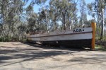 Our morning started with a drive to the Murray River & under the road bridge at Moama, to a gently sloping riverside on an inside bend of the river that the locals call “The Beach”. I’m sure on a hot day in summer it would be a pleasant place to be. At the moment after the recent flooding it could be called “The Mud”. Our next stop a little further downstream was the Moama Slipway, where riverboats are retrieved for inspection & any necessary repairs. Next to the slipway is an old Murray River barge called the Ada that is awaiting its turn for restoration, there is a lot of work required. This barge is huge, it must be over 30 metres long & 7 metres wide. The slipway gives a good view of the port area & the wharf on the Echuca side of the river. There is a lot of noticeable erosion from the last large flood, with lots of tree roots exposed & trees toppled into the river.