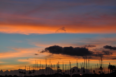 A quick breakfast at one of the many food outlets at street level then it was off to Pearl Harbour Memorial Park for the day, another nerve wracking drive through peak hour traffic. Pearl Harbour has been set out very well & we managed to pick up free tickets to head straight out to the USS Arizona Memorial, a monument built over the wreck of a ship sunk during the Japanese attack that brought the USA into the 2nd World War. The US Navy provides the boat to take tourists over on the short journey across the bay & we stayed for about 15 minutes looking at the wreck of the massive battleship, still leaking oil after 73 years. The names of all the men that died during the attack are listed on the memorial wall in the monument, another terrible loss of life.