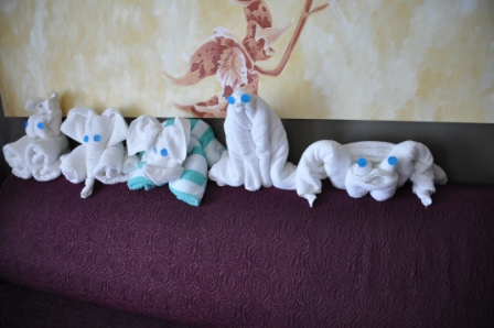 Our snack from our butler this afternoon was some yummy selection of chocolates, washed down with some nice coffee again. Dinner tonight was at Teppanyaki at 5.30pm as this restaurant is very busy & we were very hungry. The teppanyaki started with Miso soup, followed by a seaweed salad. Then the chefs came on & displayed their flashy tricks with food & cooking implements while cooking up some fried rice, then lobster, scallops & calamari. I washed this down with some warm sake. Dessert was a sushi fruit selection that was fresh & very tasty especially the pineapple. Entertainment tonight was a rock & roll tribute put together by a very competent husband & wife team that have been doing this type of thing for years.