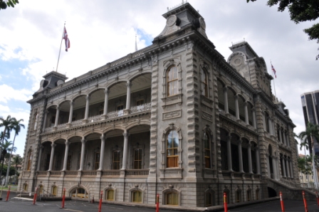 The Iolani Palace was built by one of the last Hawaiian Kings, David Kalakaua in 1882. After the Hawaiian monarchy was overthrown the use of the palace changed a number of times & over the years the condition of the building deteriorated, with termites, weather & man, all having a profound impact on its condition. The restoration of the building has now been completed & the trust have spent many years trying to relocate from all around the world the furniture & artefacts that once belonged there but were sold at auction in the early 1900s. The trust has located many items, some even from Australia, with the rooms being refurbished with original items where possible.