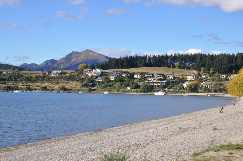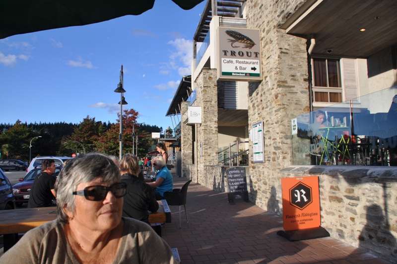Lake Wanaka has the Mount Aspiring National Park as a backdrop & is very beautiful, from our motel room balcony we can see snow on some of the peaks. It is only a short walk to the lake, the shopping centre & restaurants from our motel. We enjoyed a nice walk along the foreshore to stretch our legs & loosen up the muscles from our flight & drive. A nice dinner at the Trout Restaurant, sitting outside in the setting sunshine looking over the lake was the perfect way to enjoy our first evening in New Zealand.