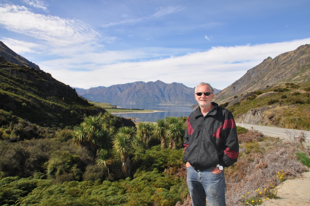 A beautiful cool sunny morning in Wanaka. This place is situated in such a lovely place, overlooking the lake and the snow capped (snow covered in winter) mountains. It is amazing that in a small town they have a lot of motels & they all seem to have the “No Vacancy” sign out. There are SO many young back packers & most of the many cafe/restaurants & bars are employing these young people to work for them. They have at least 6 Real Estate Agencies with many expensive properties for sale. They have two huge bicycle stores with expensive special bicycles & the most amazing thing is that they have a big wedding (or other novelty) cake store – there must be a lot more to this little town than what we could only see, “”TOURISTS”..