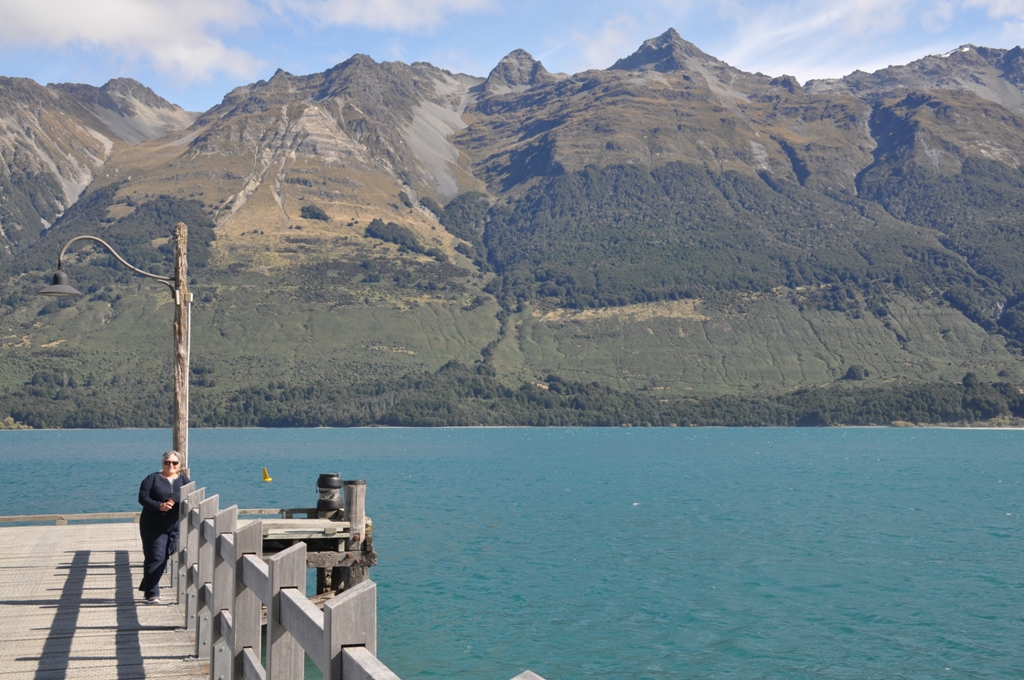This afternoon we drove out to Glenorchy, a small town at the other end of Lake Wakatipu & about 50km away. The drive was very scenic with the mountains getting higher, more & more snow on them & closing in around us as we drove further up the valley. Breathtaking & beautiful are some words that come to mind to help describe how stunning the scenery is. At Glenorchy we stopped near the wharf & had a look inside the rebuilt Glenorchy Railway Station & the shortest rail track in the whole of New Zealand. The wind was blowing well by this time but was not cold, surprisingly, it was around 22C & very pleasant.