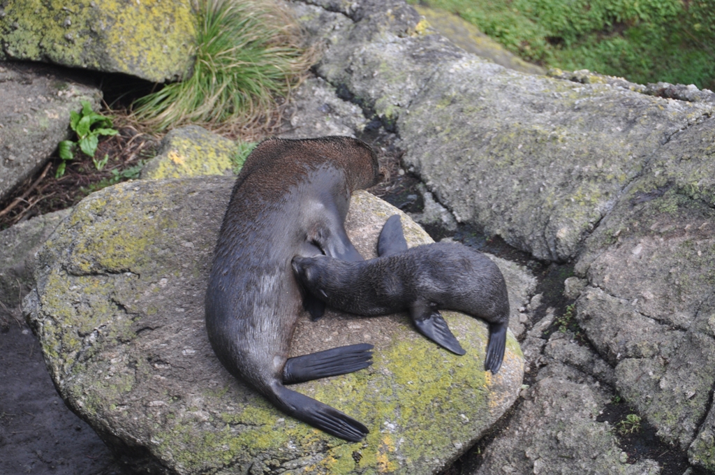 Cape Foulwind (named by James Cook in 1770) is only a short drive out of town & we stopped on the northern lighthouse side to start with at a very nice picnic area before driving around to the southern side & walking the short distance to the resident New Zealand fur seal colony. In the carpark an inquisitive native Weka (bird) was looking for a handout. There is a nice large viewing platform with lots of seal pups on the rocks below & playing in the rock pools. A number of mothers were sunning themselves on rocks & feeding their pup. Spoilt only by the sandfies chewing on us again, they really are a pest.