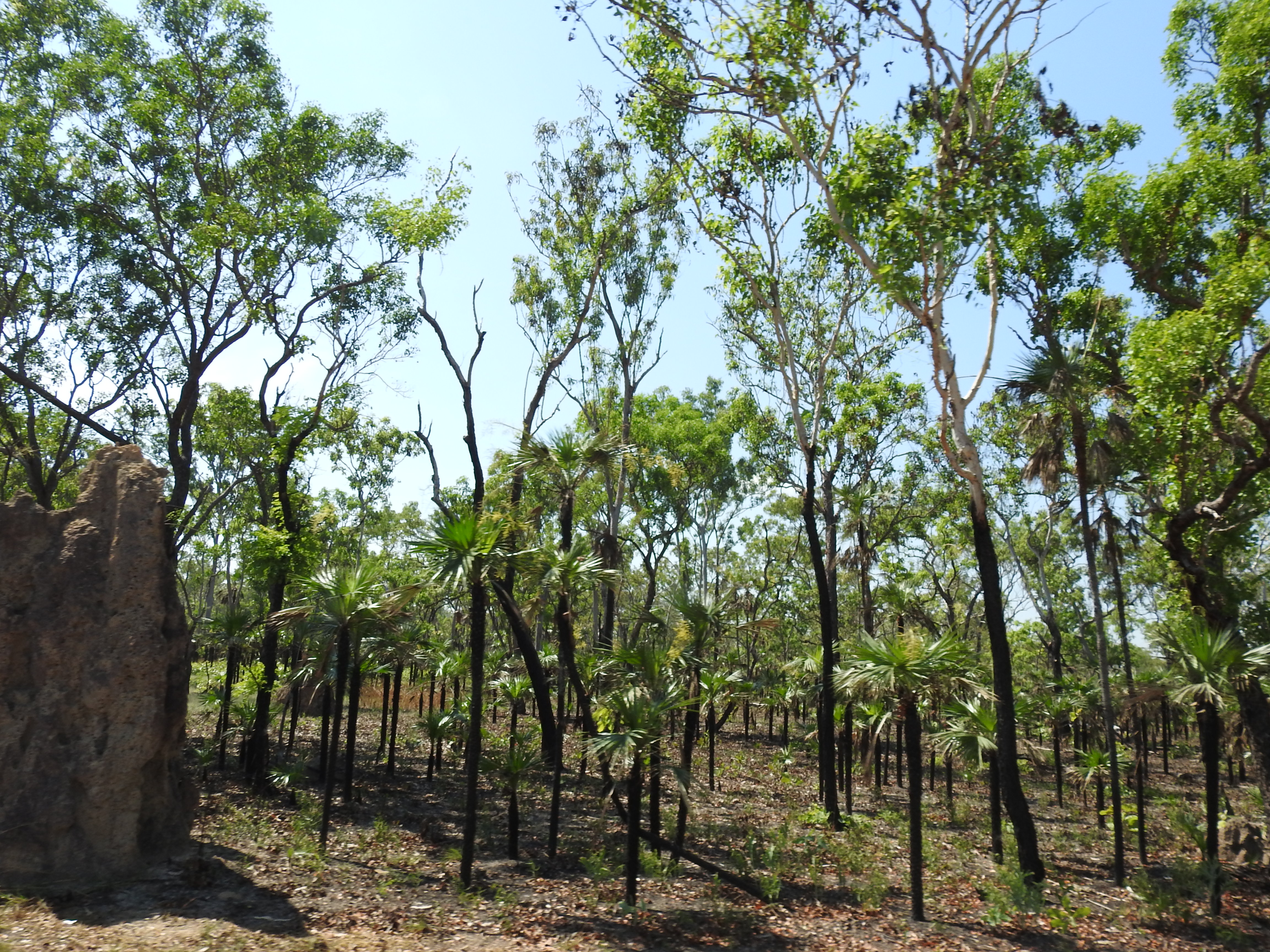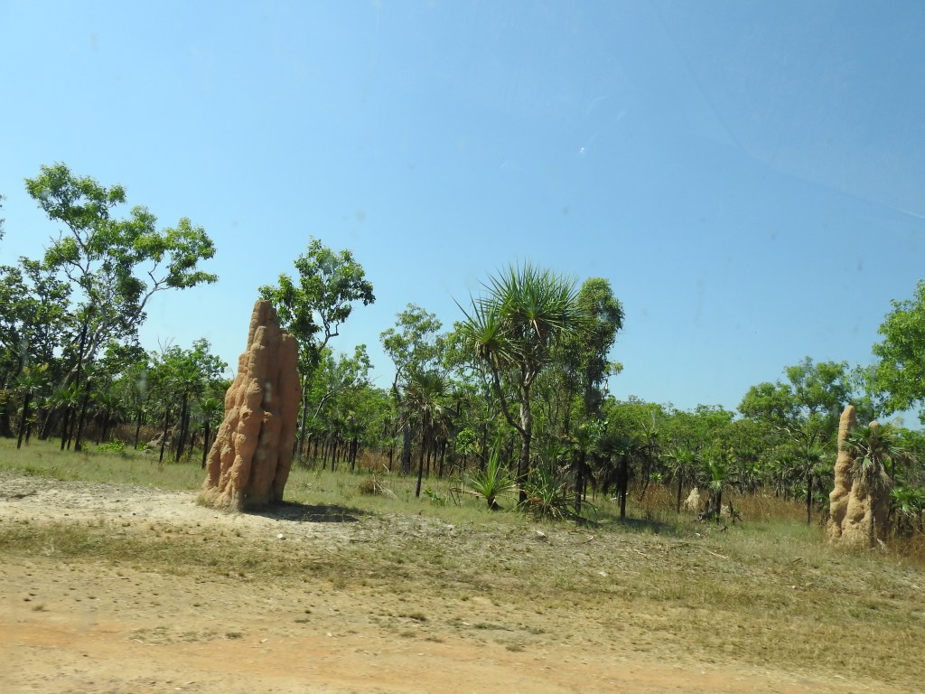 We pass through the small townships of Batchelor and Rum Jungle before reaching the national park. Our first stop is at the termite mound parking area, around 15km into the park. The termite mounds are really tall and broad, around 6 metres tall and about 6 metres around at the base. Amazing to think that tiny termites built these from mud & saliva.