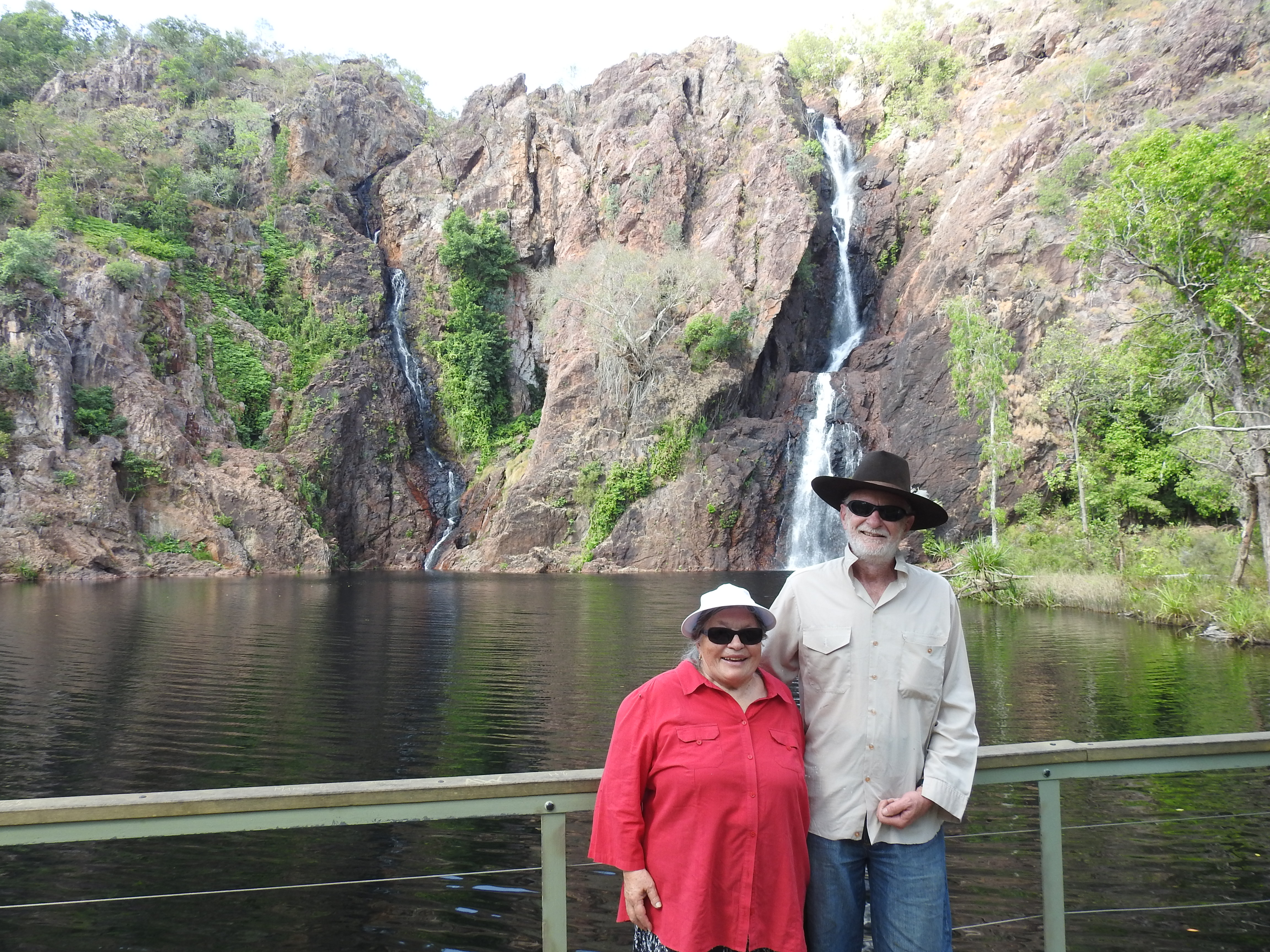 We unhook the van and drive back to have a look at Wangi Falls. There are not many cars in the car park and it is a short walk to the pool and falls. Wangi Falls is actually a twin fall, the left fall is a spring fed creek and the right fall is Wangi Creek, they were pouring a fair bit of water down. Did I mention it was hot, the very large and deep swimming hole at the bottom of the falls was so inviting to swim and was closed, saltwater crocodile danger apparently. So we took some photos, talked to other visitors and walked back to the air-conditioned comfort of our car, is was 34C and very humid.