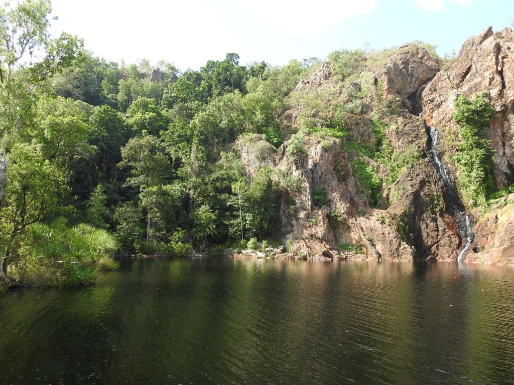 We turn off next into Florence Falls, the place we planned to camp – around 30km into the park and drove the 6km to the campground to find a spot. All full, a kind man suggested a few more possible sites. The nearby Florence 4WD only campsite was also full. The next spot is Wangi Falls campsite, around 50km into the park. It is also full, at least the drive is scenic. We continue on and another 4km down the road turn into the Safari Caravan Park, an in the bush experience. As a bonus they have some powered sites so we take one of those and set up at around 1.30pm. It is so hot & humid, the sweat is rolling off me, our air conditioner in the van comes in very handy. It seems a lot of escapees from the other states & Darwiniens take the opportunity to visit the National Parks.