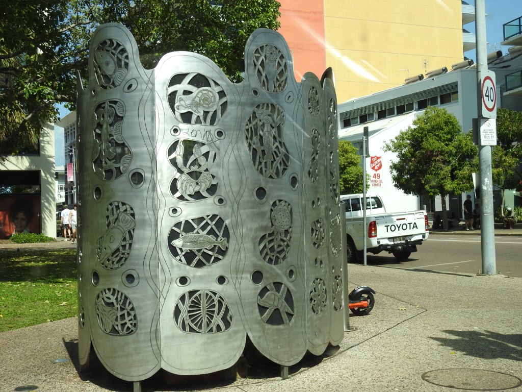 Another early start, we left our rough & ready bush camp, the Litchfield Safari Camp around 9am & turned towards Darwin. Thankfully the former dirt road was fully sealed last year and a new bridge built over the Finniss River. The traffic was light and the drive was uneventful, we stopped at Berry Springs to have a look, the car park was full & we had to park in a zone reserved for bus/coaches. We had a look & the springs are very pretty, we will have to come back for a swim. We arrived at our city well organized tidy campground with a couple of swimming pools & lots & lots of other campers around midday & setup, interestingly, next to another Kimberley Karavan. Most unusual. We unhitch & headed off to find some shops as we need some bread. We found a Woolworths shopping centre & decide on kebabs for lunch before heading into Darwin City.