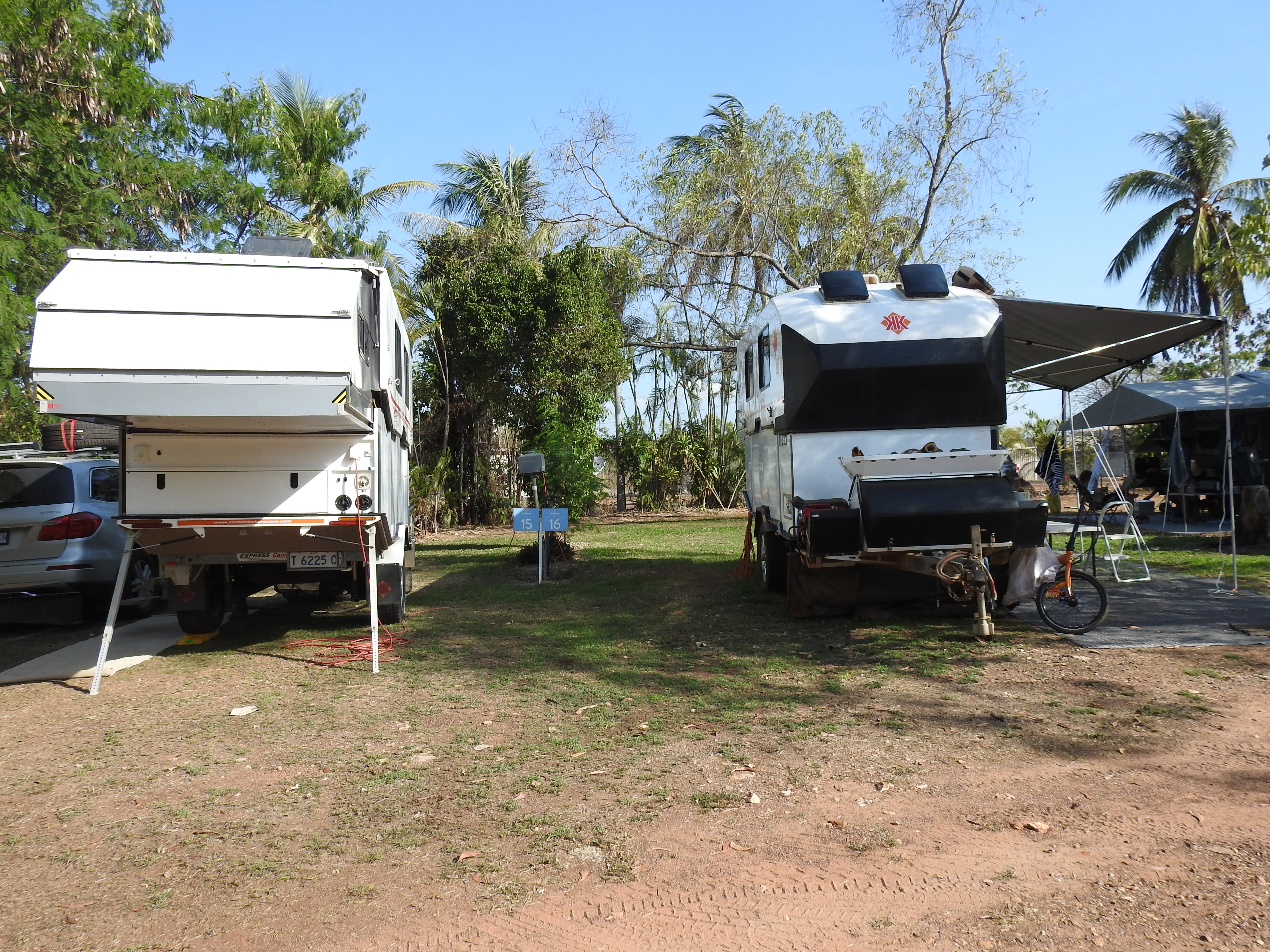 Another early start, we left our rough & ready bush camp, the Litchfield Safari Camp around 9am & turned towards Darwin. Thankfully the former dirt road was fully sealed last year and a new bridge built over the Finniss River. The traffic was light and the drive was uneventful, we stopped at Berry Springs to have a look, the car park was full & we had to park in a zone reserved for bus/coaches. We had a look & the springs are very pretty, we will have to come back for a swim. We arrived at our city well organized tidy campground with a couple of swimming pools & lots & lots of other campers around midday & setup, interestingly, next to another Kimberley Karavan. Most unusual. We unhitch & headed off to find some shops as we need some bread. We found a Woolworths shopping centre & decide on kebabs for lunch before heading into Darwin City.