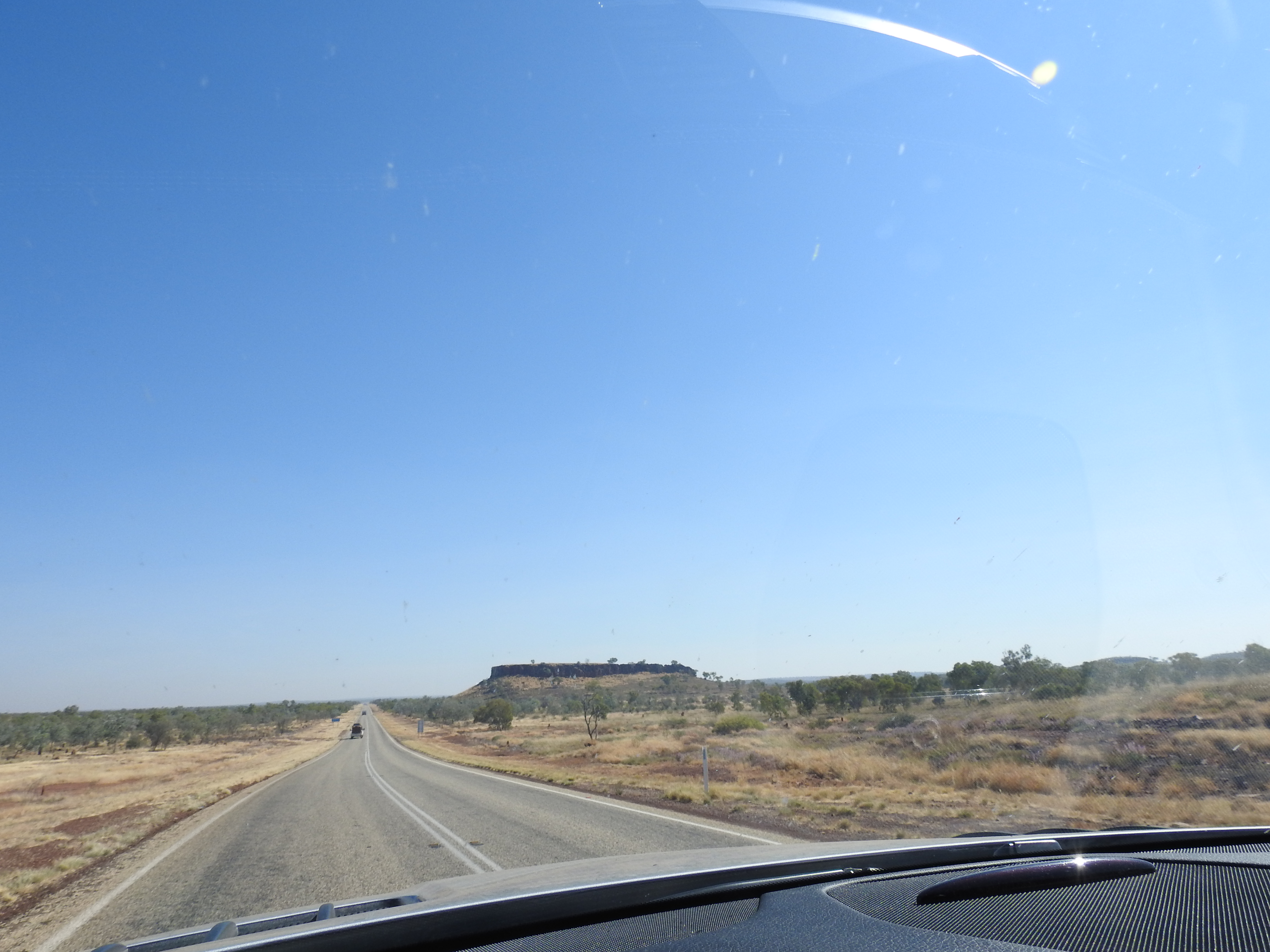 Next stop is Mataranka, 3 hours away. We make good time, most of the traffic is passing us and we slowly catch up to a road train and decide to stay behind it the rest of the way to Mataranka. Since Mt Isa we had no phone coverage, no radio & very little conversation between Ron & I, we ran out of saying anything. I am starting to run out of enthusiasm about this journey, it is such a long lonely drive with little change to the scenery. When we get phone coverage we try to book into Bitter Springs van park, but they are full so we turn into the Elyse National Park & Mataranka Station van park. Plenty of spots and we set up next to a nice couple that chat with us a while. Then off to the Mataranka Springs. A short walk down through the palm trees, unbelievable the change from the vista we have been driving through for days. The pools are full, but not too crowded. After a while we are joined by our neighbours and chat for a long time, we have a lot in common with them. We stay in the pool for a couple of hours until it gets dark, then chat to some more people at the pool, a German & Italian couple. They told us that Bitter Springs are closed, there is a crocodile that had been spotted in there and they were in there swimming last night in the dark. Good thing we couldn’t get in there. Then back to our van for a light bite to eat. It is a great day now that Tereza has seen that there can be something nice on the other side of the horizon.