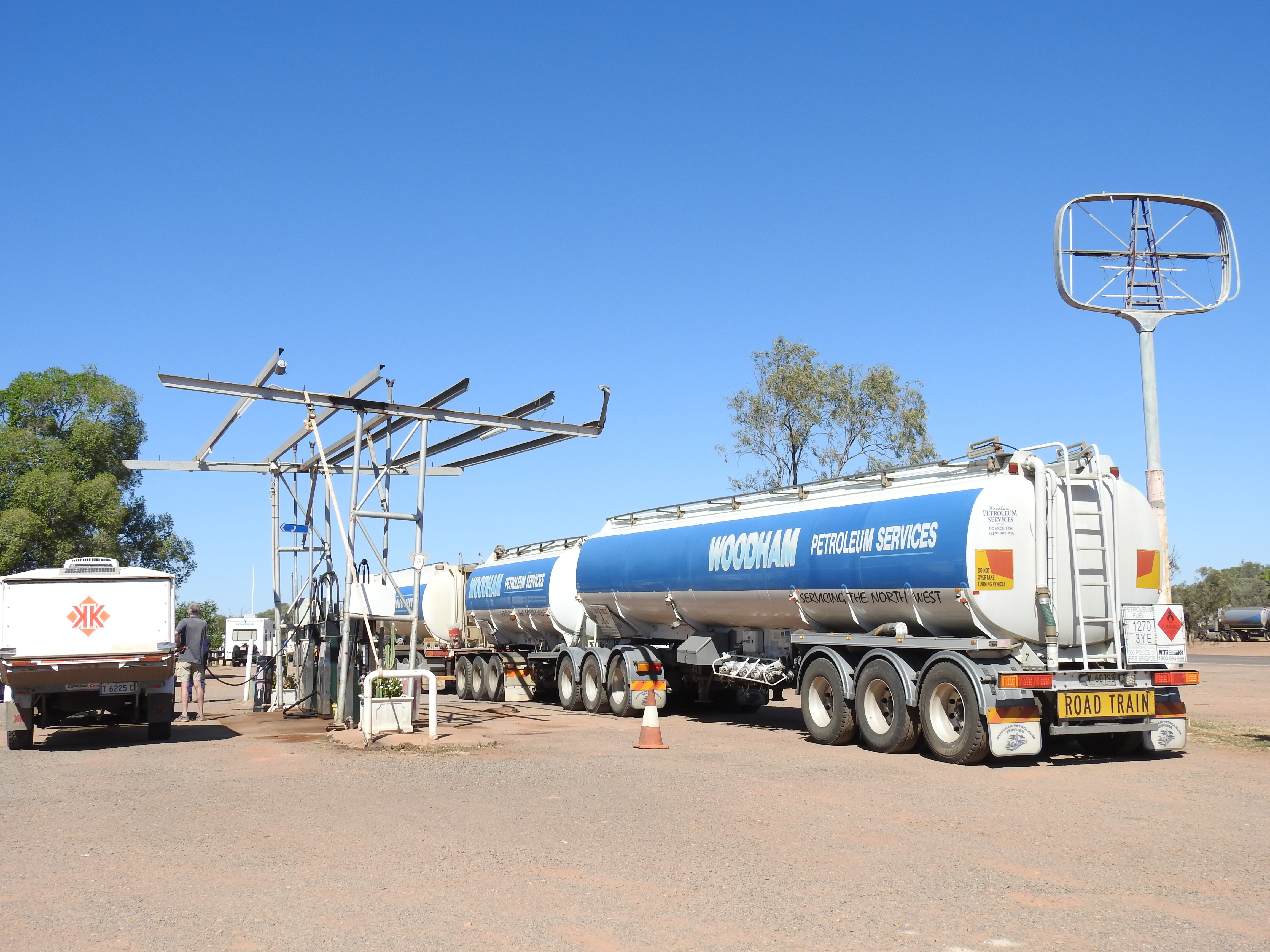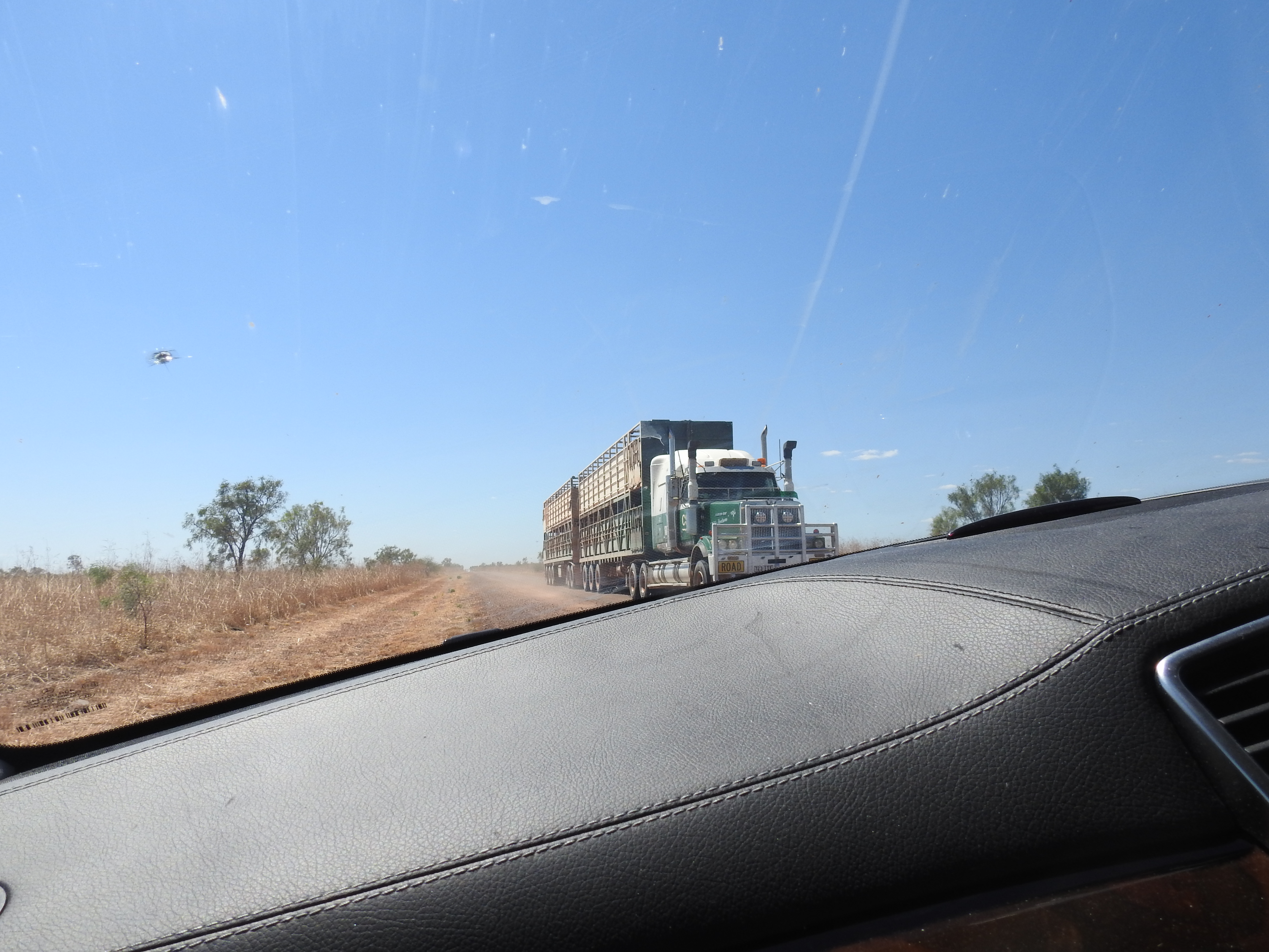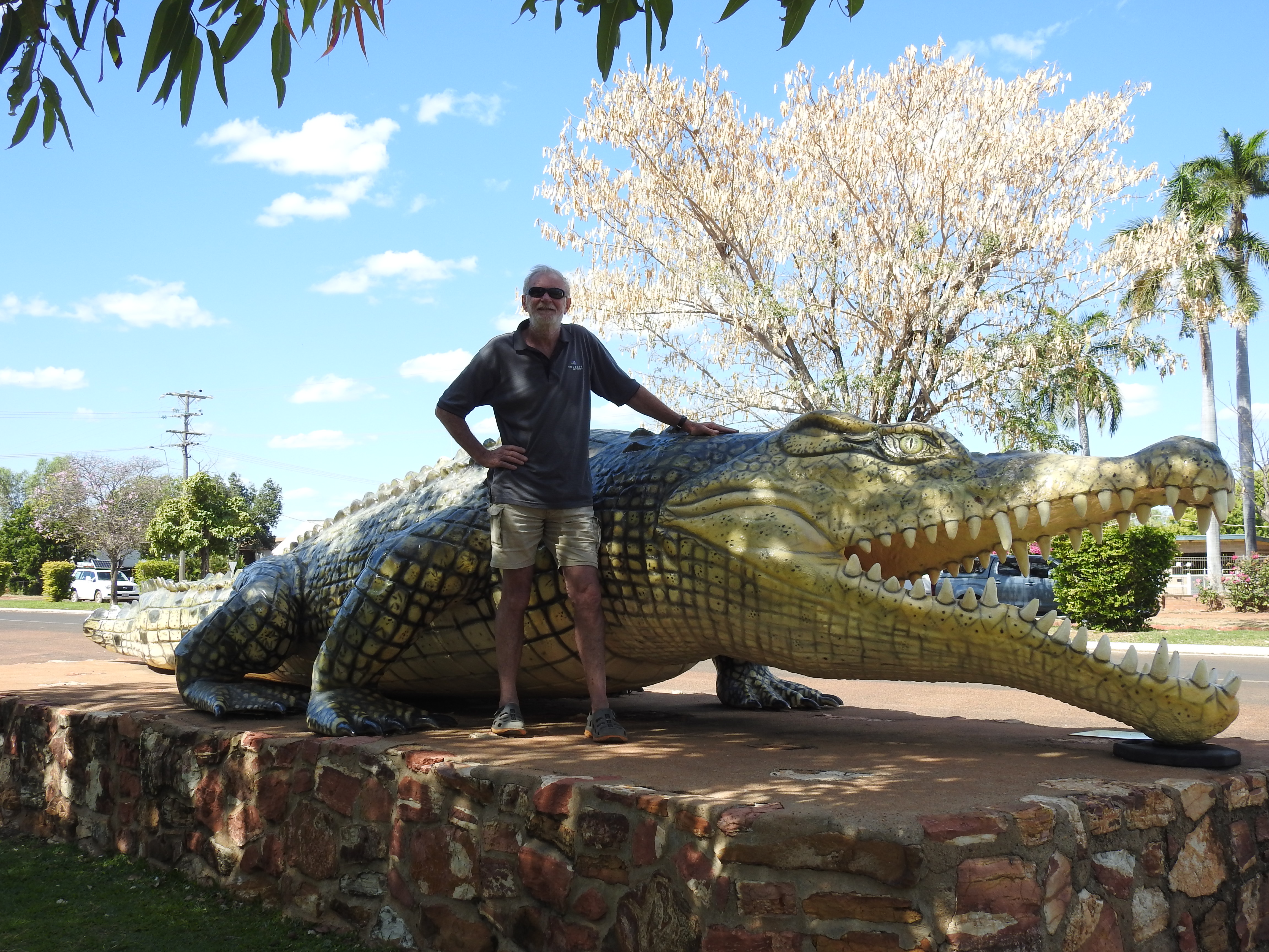 Sunrise start again and we tried to be quite as the other campers were still asleep. This is a very nice camping spot, right on the river, lots of trees, lots of birds. The road out is very rough climbing out of the river banks on a rough dirt track, we wind the car up to full height and slowly climb out. Back to Gregory then turn right and off to the Burke & Wills roadhouse on the way to Normanton & Karumba. There are lots of dead wallabies and kangaroos on the side of the road plus lots of kites feeding on them plus a few wedge tail eagles on the carcase. Termite mounds by the thousands on the side of the road are a feature of the drive. We refuel at Burke & Wills plus have a burger for an early lunch, this place is so busy, lots of caravans and camper vans doing the same and heading in all different directions.