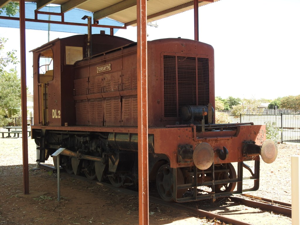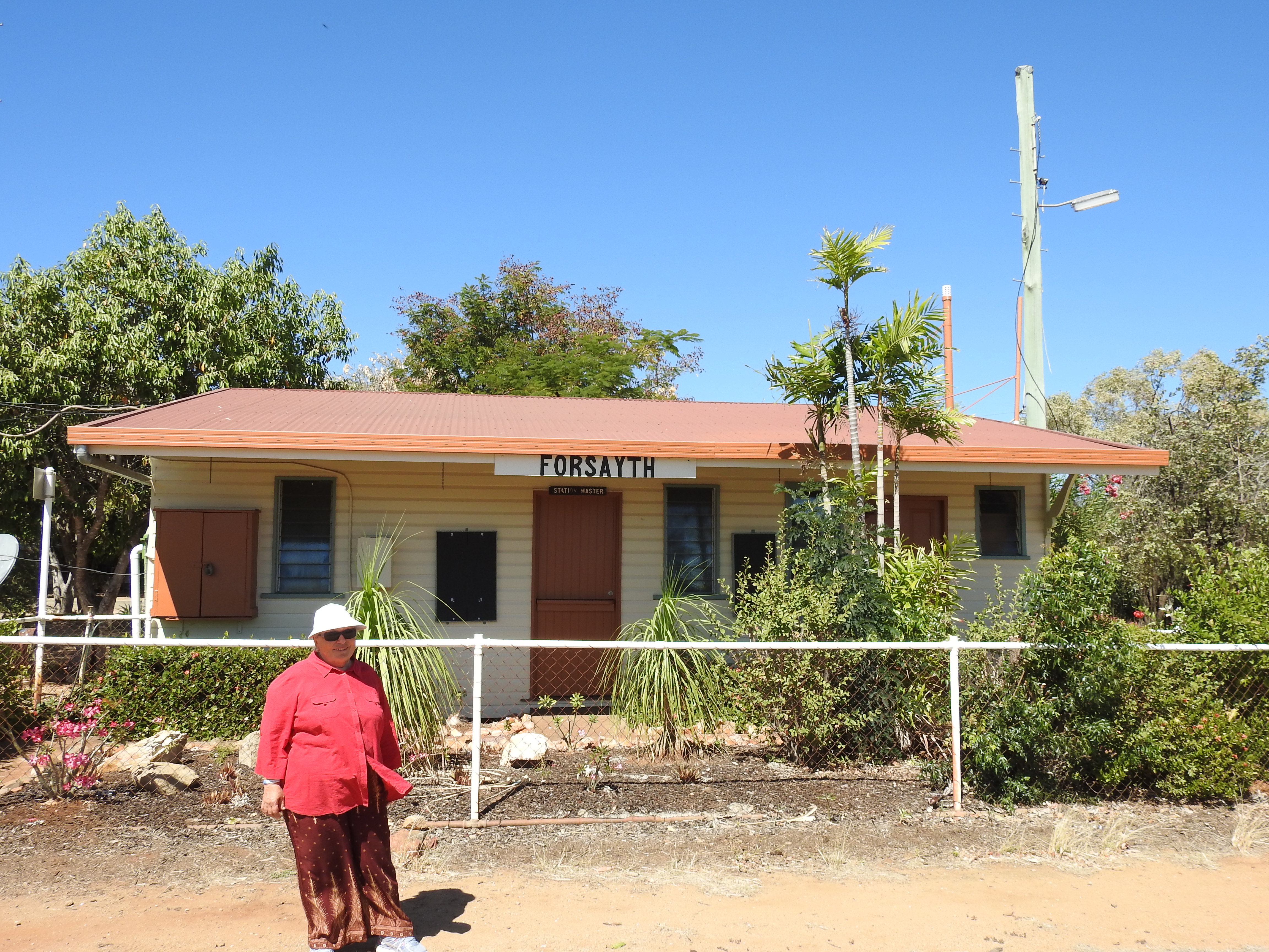 An easy start today and an easy drive from Georgetown to Forsayth, a bit over 40km through rolling hills and around 8km of good dirt. We booked the last spot at the Forsayth van park before we left & when we arrived, we are put in the overflow spot across the road next to a shady tree. We take a walk around town after we set the van up & had a look at the old Forsayth railway station and nearby park. The train runs once a week from Cairns carrying tourists and is called the Savannahlander, it runs on a 3 foot 6 inch gauge track. The track was laid during the days of the gold rush in this part of Queensland. It is interesting, there are so many old gold mining towns in this area that were once thriving and now most of them are gone, some the only evidence is a lonely cemetery in the bush. The current population of Forsayth is 54 people.