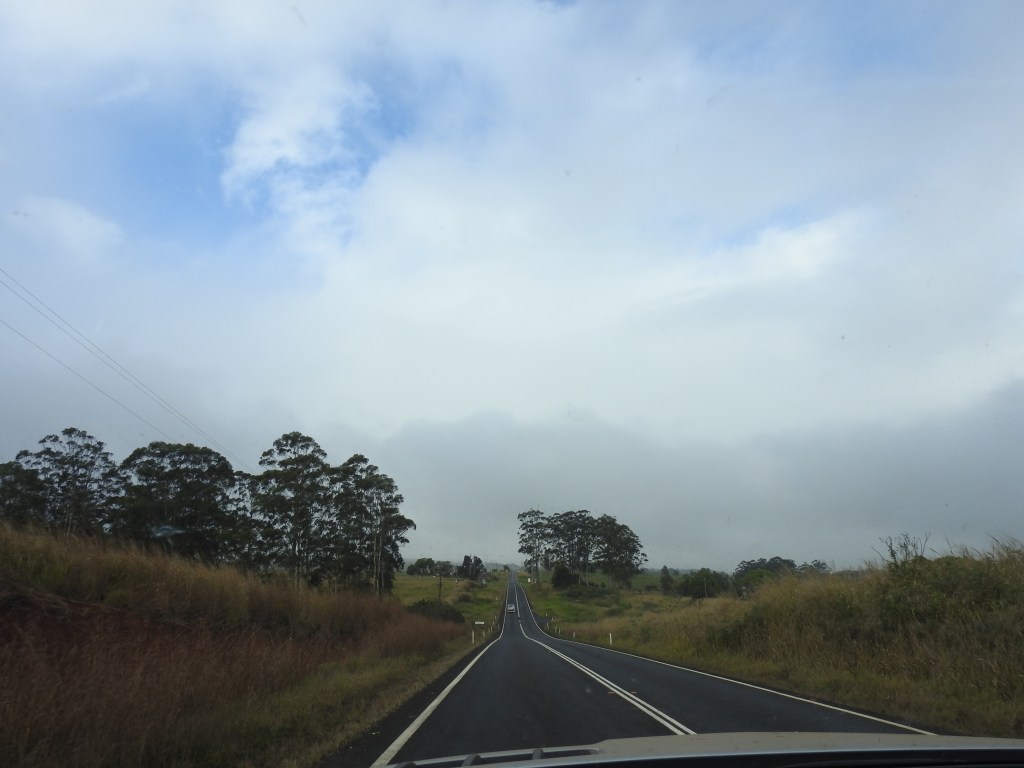 The road condition to Georgetown was good with only around 10km of dirt before we refuelled and turned right towards the Atherton tablelands. The bitumen was a blessing after all the bad dirt, however the dual lane changed down to a single lane of poor bitumen then back to dual & back to single for the next 200km until we reached Mt Garnet. We stopped to stretch our legs, the local visitor centre was closed and we checked the distance to our planned destination, it was only 60km more to Malanda Falls Caravan Park. We phoned & they had a spot so we booked in and continued on our way. The scenery started to change, noticeably the termite mounds were bigger & baulbous, different than what we had seen previously. Once we reached the Atherton Tablelands we climbed up onto the range, the temperature dropped to 15C and it started to rain. We are driving in the clouds. Lush and all so very green grass & magnificent rainforest trees are a welcome change, the cold & rain is not.