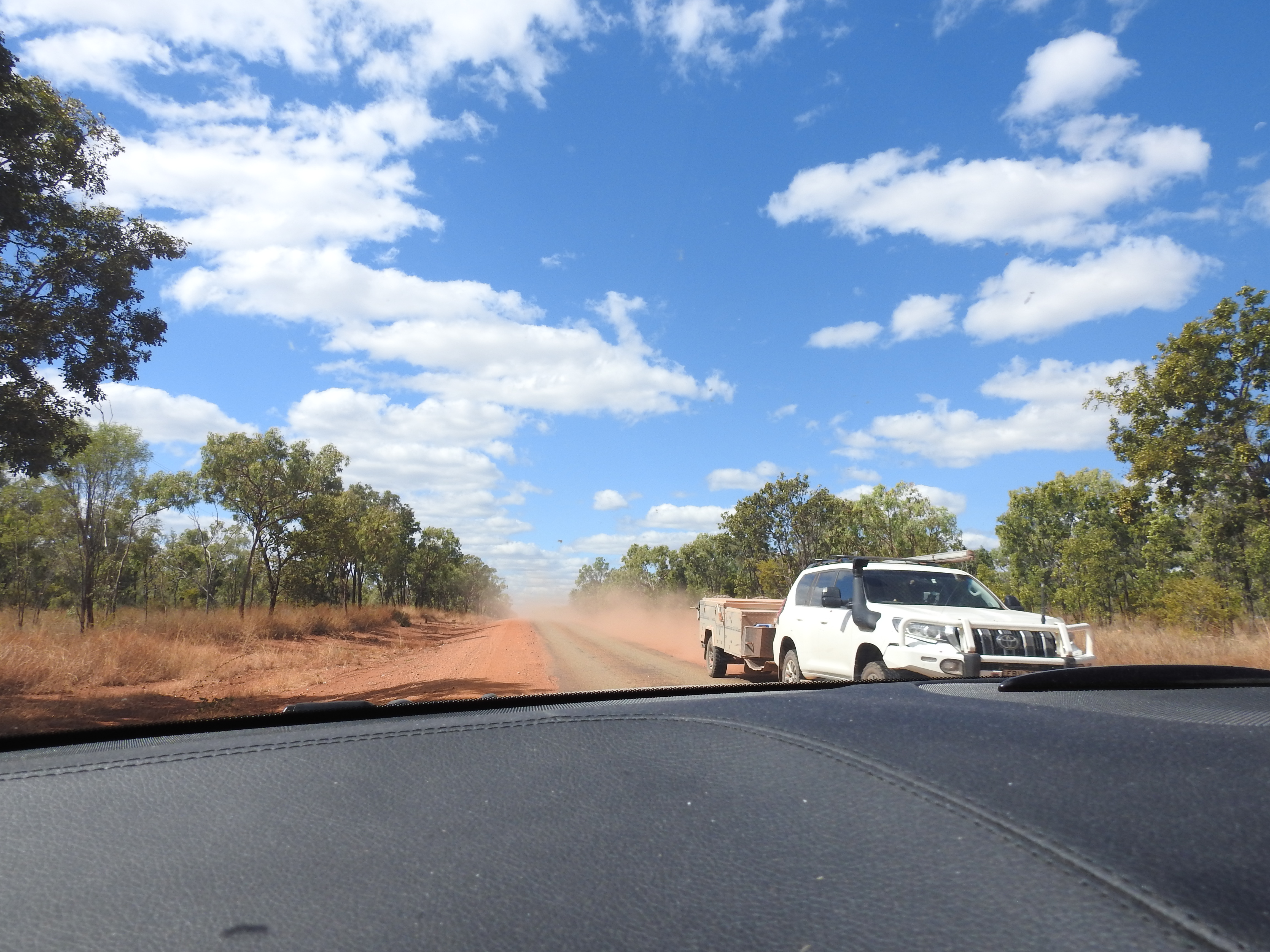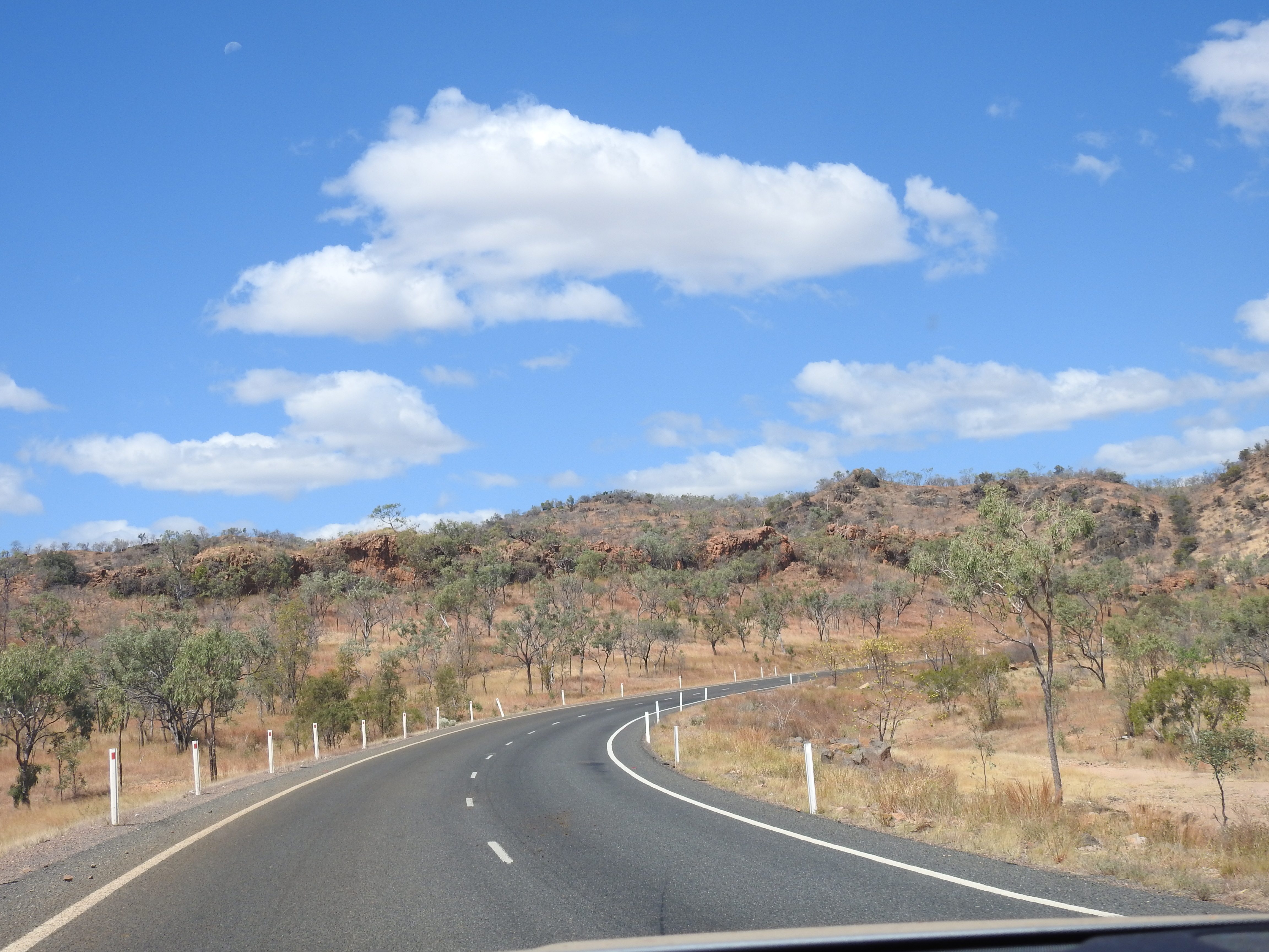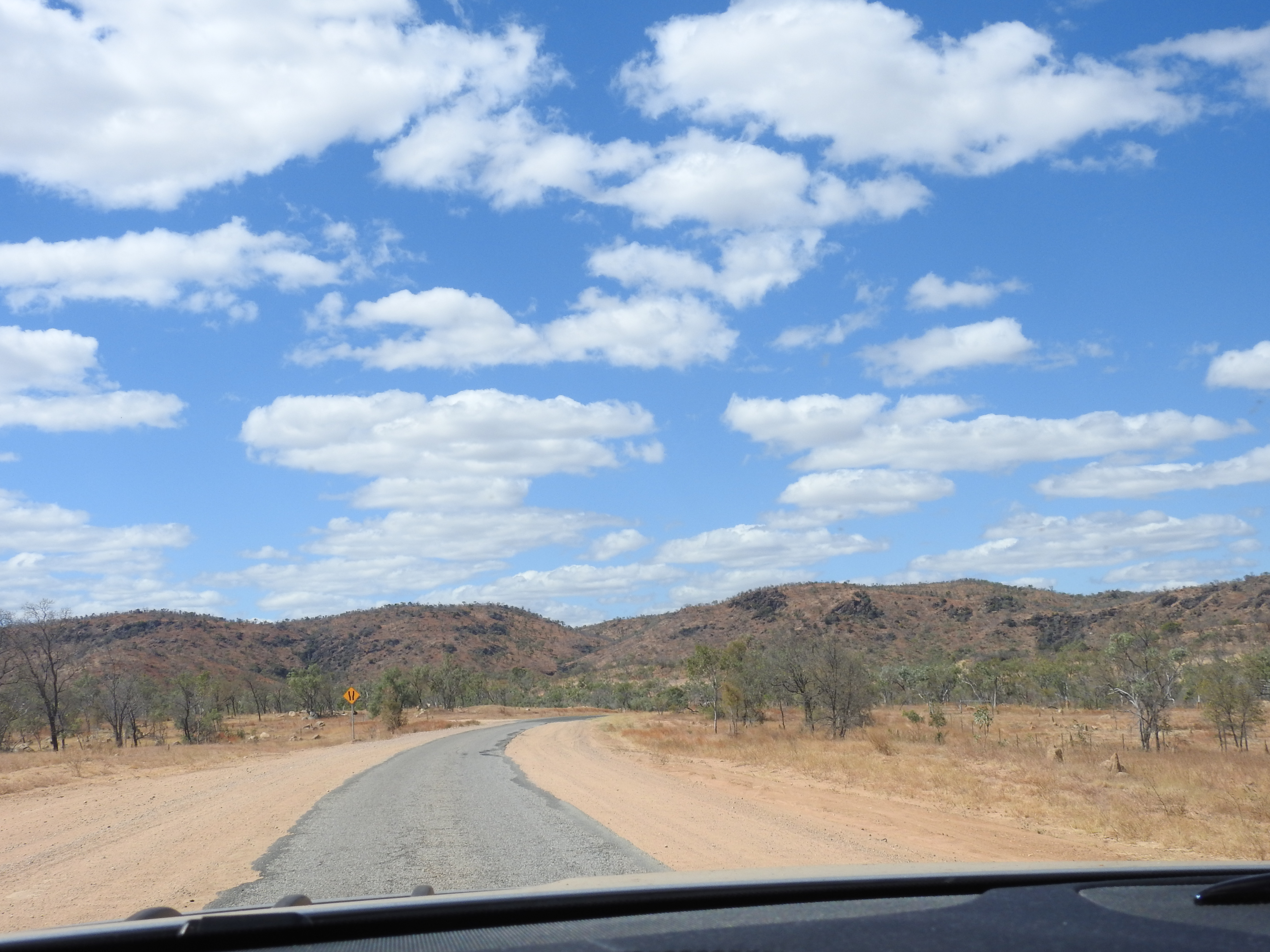We left Cobbold Gorge this morning after chatting to some camping neighbours and letting the tyre pressures down a bit more. It took us around 2 hours over the very corrugated road to travel the 48km back to Forsayth where we stopped in the shade next to the park and pumped the tyres back up to their correct pressures again. Lunch at the Goldfields Hotel across the road with lots of flies descending once our meal arrived. We read the history on the walls of the hotel, all very interesting.