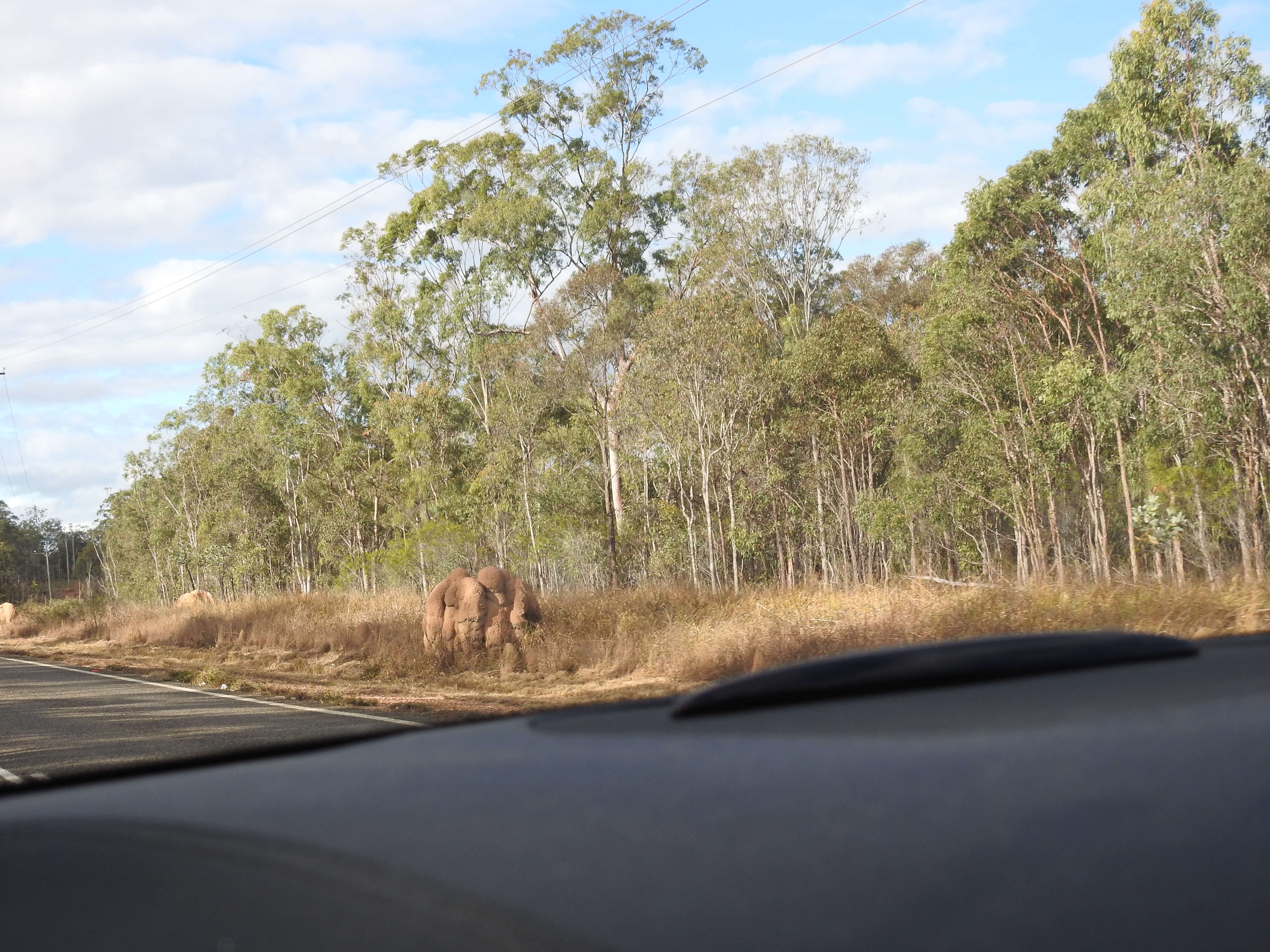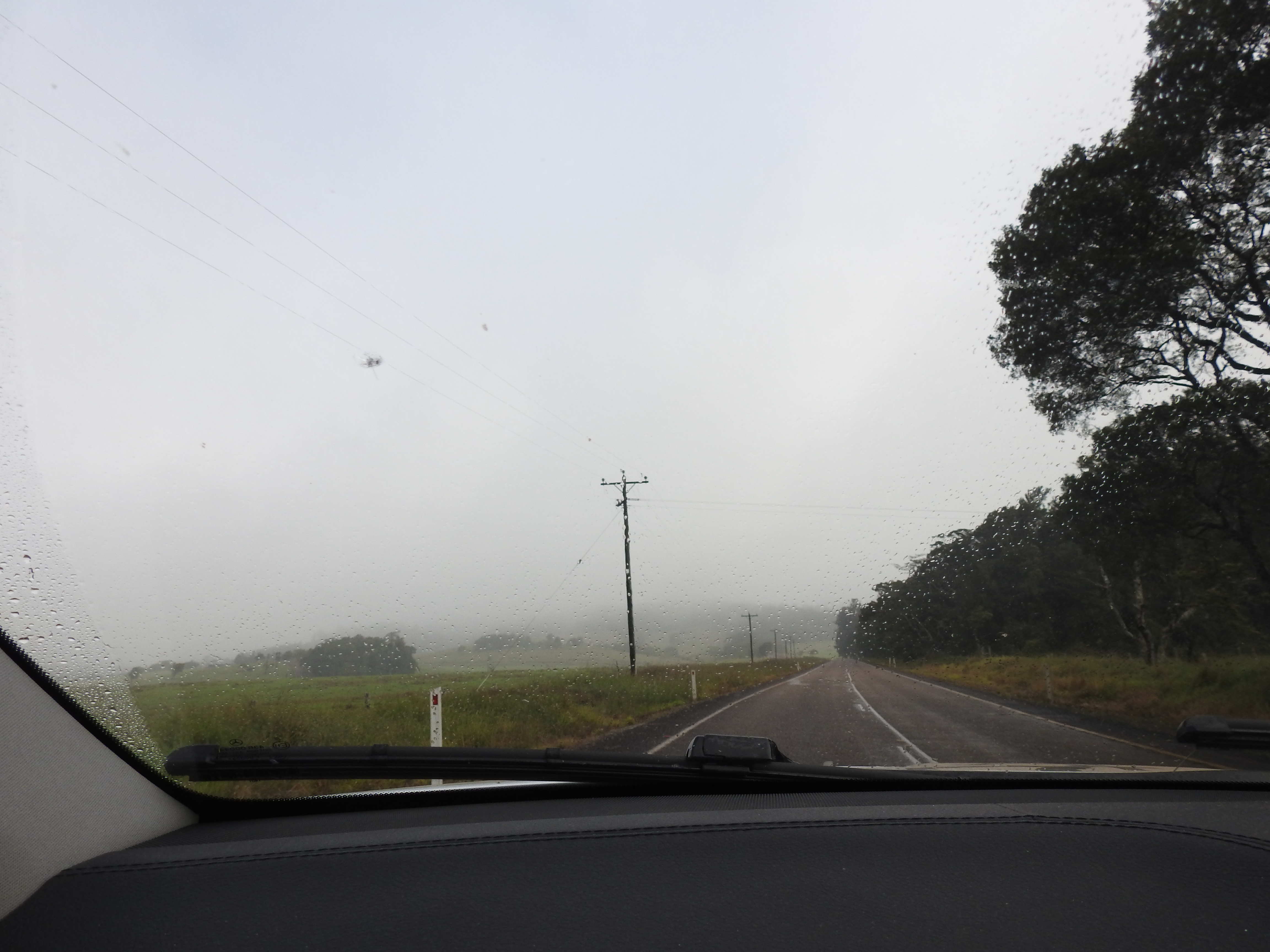 The road condition to Georgetown was good with only around 10km of dirt before we refuelled and turned right towards the Atherton tablelands. The bitumen was a blessing after all the bad dirt, however the dual lane changed down to a single lane of poor bitumen then back to dual & back to single for the next 200km until we reached Mt Garnet. We stopped to stretch our legs, the local visitor centre was closed and we checked the distance to our planned destination, it was only 60km more to Malanda Falls Caravan Park. We phoned & they had a spot so we booked in and continued on our way. The scenery started to change, noticeably the termite mounds were bigger & baulbous, different than what we had seen previously. Once we reached the Atherton Tablelands we climbed up onto the range, the temperature dropped to 15C and it started to rain. We are driving in the clouds. Lush and all so very green grass & magnificent rainforest trees are a welcome change, the cold & rain is not.